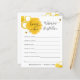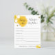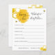 Peça aos seus convidados chás que preencham estes desejos adoráveis para cartões de bebê no seu chá de fraldas. Apresentando uma ilustração da coloração aquosa das colmeias, do pente de mel e das abelhas buzinas. Personalize o nome da Mamãe a ser e a data do chá.