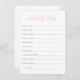 Um cartão de desejos bonitinho e simples para o bebê. Esta placa de chá de fraldas apresenta uma delicada inscrição cor-de-rosa e combina perfeitamente com o convite do Baby Bash nesta coleção.