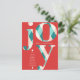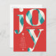 Esta corajosa e moderna design de natal irradia energia festiva com um fundo vermelho impressionante e a palavra "JOY" em grande e padronizada tipografia. O texto que o acompanha difunde desejos de feriados incríveis, fazer-o uma escolha perfeita para partilhar o espírito do Natal. Com uma mistura de elementos clássicos e contemporâneos, este cartão transmite uma mensagem de alegria, paz e aplausos para a temporada.