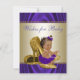 Cartão de desejos de baby shower de menina para bebê com adorável bebê étnica vestindo tutu roxo e pérolas em um par de sapatos elegantes de salto alto dourados em um fundo roxo e dourado. Você pode personalizar esses desejos roxos para cartões de bebê para o seu evento simplesmente adicionando seus detalhes no estilo de fonte e cor de sua escolha. Você pode adicionar seu próprio texto. Basta ter seus convidados preenchê-los e guardá-los como lembrança do bebê.
