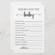 Adquira este cartão editável e desfrute de desejos de alta qualidade para o bebê para o seu evento! Este é um modelo de cartão, Você pode personalizar o cartão, mudar o texto como quiser! Atividades de chá de fraldas! Design de preto e branco neutro por sexo.