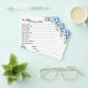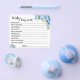 Azul floral Deseja o novo Chá de fraldas do cartão do jogo do bebê. Mude a redação para o design. Para alterações adicionais (cor da fonte, estilo da fonte ), clique em personalizar, role para baixo e clique no link "clique para personalizar mais". COMO JOGAR: O Convidado preencherá o cartão após a formulação fornecida para compartilhar seus melhores desejos para o Novo Bebê