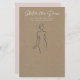 Passe os lençóis do jogo "Desenhe o Vestido" no chá e peça aos hóspedes para desenhar do que a noiva vestirá no grande dia. O palpite mais próximo vence, ou a noiva pode apontar prêmio para criatividade e favoritos! NOTA DO DESIGNER: Para obter melhores resultados, fornecer aos convidados canetas de gel BRANCO para desenhar de vestidos brancos no fundo da kraft castanha.