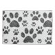 Uma raça preto e branco bonito do cão da chihuahua que veste vidros. Ilustração da chihuahua com um fundo do desenho gráfico do impressão da pata do cão.