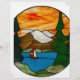 Esta bela foto apresenta o meu Desenho Original de Arte em Vidro Pintado de Barco a Velas no Lago da Montanha.