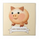 Azulejos de cerâmica personalizados. Um belo desenho de porquinho. Ideia de decoração. Editar nome para personalizar. Ideia de presente para crianças.