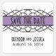 Deco elegante e elegante, salve os adesivos de data com borda de lavanda de espiral de rico. Este na moda é a escolha perfeita para anunciar um casamento inspirado no deco vintage. Fácil de personalizar, basta adicionar os detalhes do casamento nos campos de texto fornecidos. Clique em "Personalizar" para encontrar mais opções de personalização.
