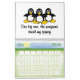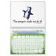 Calendário engraçado do pinguim. Cada página tem uma imagem/desenhos animados diferentes dos pinguins com provérbios engraçados. Garantido para pôr um sorriso sobre sua cara e para fazê-lo rir cada mês do ano. O texto pode ser mudado/personalizado. Vão assim adiante os amantes do pinguim, personalizam um calendário que você aprecie todo o ano.