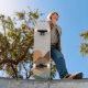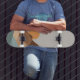 Um skate de sol e montanhas desérticas, estilo boho. Terracotta, bisque e verde.
