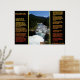 O cheio Desiderata de Max Ehrmann: Entre o barulho e a pressa... exibindo um fôlego considerando um riacho de Waterfall vindo em sua direção, longe da montanha e névoa saindo da água no fundo das quedas. Os versos escritos em laranja inspiraram jovens adultos desde a década de 1920 e são tão populares hoje quanto antes. Foi dado como presente por pais, avós, padrinhos e tias e tios amáveis desde que foi escrito. Eles descobriram que é uma das poucas formas de que tal sabedoria passe por aqueles que não perdoam hormônios, dando apoio à próxima geração através de seus anos rebeldes.