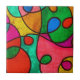 O azulejo de cerâmica abstrato de várias cores apresenta uma interação dinâmica de cores vibrantes, incluindo azuis, vermelhos, amarelos, verdes e púrpura. O design tem um padrão fluido e giratório que lembra a arte moderna da abstrato. Ele inclui gradientes, salpicos e um fluxo orgânico que adiciona profundidade e energia à composição. A superfície parece brilhante com um acabamento ligeiramente texturizado, enfatizando o caráter vivo e artístico da peça.