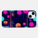 Arte abstrata vibrante e colorida com padrões geométricos, formas e folhas com um estilo contemporâneo em um fundo escuro, evocando uma estética visual moderna, dinâmica e criativa.