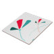 Esse azulejo é caracterizado por um design minimalista de duas flores com pétalas em aquamarina, vermelha e verde que aparecem da direita, sobre fundo branco.