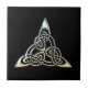 Um triângulo branco de prata brilhante brilhante deu forma ao nó connosco entrelaçados de espiralamento em dar laços intrincado e em um design curvy em um fundo preto.