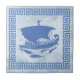 Design chave grego clássico com o navio grego da vela e os golfinhos brincalhão. Azul, textured.
