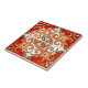 Arte por Marta Harvey. Cada azulejo alaranjado pequeno neste design foi imprimido com um bloco cinzelado mão, pintado com aguarelas e esboçado com caneta & tinta. Este design foi inspirado pelos azulejos portugueses, chamados azulejos.