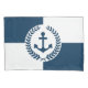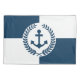 Design com temas náuticos, com decoração da soleira da âncora e da soleira do louro sobre fundo geométrico azul e branco