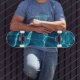 Luz solar refletindo do design da plataforma do skate do conselho do skate da água H20 da piscina em uma piscina do design da mesa do conselho do skate da água pelo rick curto.