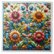 O trabalho de arte exibe um arranjo impressionante de azulejos intricadamente projetados que apresentam um padrão floral vibrante.