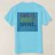 A design da camiseta "Sorriso Suado" captura a mistura de malhações e positividade. Ele apresenta uma tipografia ousada que lê "Sorriso Suado" em fontes dinâmicas e modernas, com a palavra "Suor" aparecendo em um estilo ligeiramente robusto e texturizado para representar o trabalho do duro, enquanto "Sorriso" é limpo e alegre para transmitir um senso de realização e alegria. Atrás ou em volta do texto, podem ser adicionadas gotículas de suor esbatido ou um smiley face, simbolizando o sentimento gratificante após um bom exercício. A paleta de cores pode incluir cores vibrantes e de alta energia, como amarelo neon ou azul elétrico em um fundo contrastante, dando a ela uma vibração esportiva, elevando a vibração perfeita para os entusiastas da malhação.