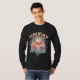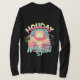 Esta design de camiseta vibrante apresenta a frase "Holiday well Spent" em texto ousado e colorido. A palavra "HOLIDAY" aparece num gradiente de amarelo a rosa, passando por uma cena pitoresca do pôr do sol. O pôr do sol inclui um grande pôr do sol sobre um oceano calmo, com reflexões sobre a água e nuvens lisas no céu. Um sol alegre com um rosto sorridente e duas nuvens deliciosas acrescentam um toque lúdico ao design. As palavras "Bem Gasto" são escritas numa fonte na moda, cursiva, de cor azul clara, completando o tema sereno e alegre de feriado.