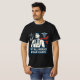 A design apresenta um gráfico ousado e moderno de um estetoscópio formando forma cardíaca no centro da camisa, simbolizando cuidados e compaixão. Acima do gráfico está o texto "Salvando Vidas Diárias" em uma fonte limpa, sans-serif, enquanto abaixo dele, em cursivo, ele diz "Orgulhoso de ser um Doutor". Ícones sutis como uma cruz médica, uma seringa e uma linha de batimento cardíaco destacam os cantos para detalhes adicionais. O design usa cores calmantes, como azul marinho, branco e branco para uma aparência profissional e limpa