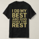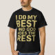 Esta design de camiseta motivacional encoraja você a dar a todos e confiar no resultado, mantendo uma perspectiva positiva. Diz: "Faço o meu melhor e Deus faz o resto."