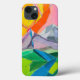 Uma paisagem montanhosa colorida. Incorpora e abstrata design, emulando o efeito do vidro rachado.