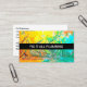 Cartões de visitas de canalização verdadeiramente exclusivos, projetados com uma tela plana de fundo colorido de água e seu nome de empresa, apresentados exatamente na frente deste modelo de cartão de visita de serviço de canalização personalizado de dois lados.