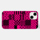 Padrões de retalhos de Designs mistos, cor-de-rosa e preto, de 16 diferentes ilustrações Design de Fleur-de-lis, coroas, corações, Bolinhas, chave grega, Abstrato irregular, Houndstooth, Árvores, Harlequin, Stripes, Check, guarda-chuva, âncora, Chevron, blob e Designs florais.