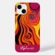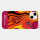 Um giro funcho e design de linha curva em laranja e burgundy. Adicione seu nome na parte inferior em um script de escrita manual.