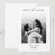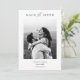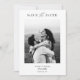 Eu criei esta design minimalista moderna mostrando seus detalhes de casamento. Esta opção Save the Date Card (Salvar a data) está perfeitamente enquadrada e funcionará como excelente com fotografias a cor ou a preto e branco.