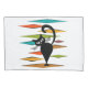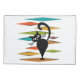 Ilustração colorida do estilo de Meio século abstrato com gato preto e decoração colorida de rombos em fundo branco