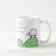 Mug com comércio ou profissão. Cartoon engraçado de uma ovelha no topo de uma colina. A ovelha diz "Melhor Baaa Nenhum". Design repete-se em ambos os lados
