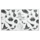 Itens de Halloween desenhados em papel e rastreados no Illustrator para criar o padrão.