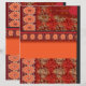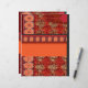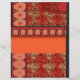 O design apresenta um design têxtil detalhado, provavelmente destinado ao tecido ou papel de parede. Aqui estão os detalhes: ・ Esquema de cores: Predominantemente laranja, vermelho e branco. ・ Faixa vertical central: Uma cor laranja sólida corre a meio. ・ Padrões de revestimento: iludir os motivos florais e os detalhes do ornamentado em tons de vermelho, laranja e branco, com alguns elementos semelhantes a rendas. ・ Fundo: Um olhar aflita com salpicos de vermelho sobre uma base mais escura, dando-lhe uma sensação de safra. A disposição simétrica e a combinação de motivos florais e ornamentados tornam-na visualmente atraente e adequada para várias aplicações em moda ou decoração de interiores.