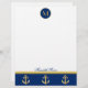 Cabeça-alfanumérica: Design náutico moderno/Ancoragem Dourada Padrão/Fundo Azul Marinho/Bar de Destaque Dourado e Monograma Inicial