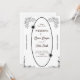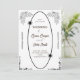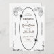 Este cartão de convite de casamento apresenta um clássico design preto e branco com elegantes bordas florais em cada canto. A área central é destacada por uma borda de forma na moda oval, adicionando um toque de sofisticação ao design geral. Este convite é perfeito para um tema de casamento tradicional e eterno.