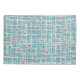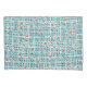 Na moda sobre o padrão de tendência inspirado por designs de meio século modernos com formas de starburst atômico num cesto branco tecido em tons de laranja, cinza, turquesa, preto e branco