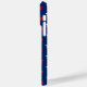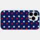 A Capa de telefone Design iPhone das Estrelas Vermelhas e Azuis apresenta um padrão moderno de estrelas vermelhas e brancas sobre um fundo azul marinho. Perfeito para uma festa de aniversário de verão ou uma celebração patriótica do Dia Memorial.