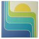 Design do Sol Geométrico Retroativo em Verde Azul e Amarelo.