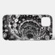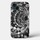 Design linear original de flores pretas e brancas com ilusão ótica de túnel. As flores desenhadas manualmente e as folhas espiralam-se em círculos decrescentes. O design perfeito para aqueles que querem algo bonito mas diferente.