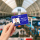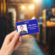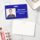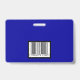crachá de ID de Funcionário Horizontal com fundo azul Real. Todos os elementos podem ser alterados ou removíveis. Os elementos incluem: foto do funcionário, nome do funcionário, nome da empresa, departamento do funcionário. A parte traseira do design tem verificação de código de barras de segurança. Disponível na orientação horizontal. Slot no topo para o pátio.