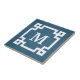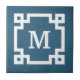 Design monograma com decoração de borda chave grega sobre fundo azul verde
