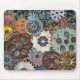 Estes oxidação e metal das características do mousepad do tema de Steampunk vários coloriram as engrenagens, que são frequentemente representativas do gênero de Steampunk.