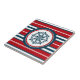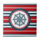 Design náutico com decoração em forma de bússola em fundo listrado vermelho, azul e branco