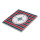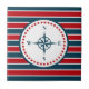 Design náutico com decoração em forma de bússola, em forma redonda, com estrelas sobre fundo listrado vermelho, azul e branco