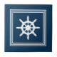 Design com temas náuticos com decoração das rodas de vela em quadrados com faixas de rodagem em fundo azul