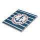 Design náutico com decoração em forma de âncora em fundo listrado a azul e a branco