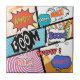 Vetor alto original do detalhe do design A da história em quadrinhos de uma página típica da banda desenhada com várias bolhas do discurso, símbolos e efeitos sadios e fundos de intervalo mínimo coloridos.